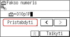 Siųsdami faksą tarptautiniam adresatui, šia eilės tvarka įveskite tarptautinio ryšio numerį, šalies kodą ir adresato fakso numerį. Paspauskite [Pristabdyti] tarp numerių, kad įterptumėte pauzę.