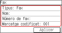 Si es produeix un error de comunicació en enviar un fax a una destinació internacional, seleccioneu [Internacional (1)]. Si l'error no millora, seleccioneu [Internacional (2)] i [Internacional (3)] en aquest ordre.
