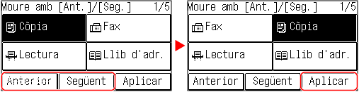 Seleccioneu [Anterior] o [Següent] per moure el botó, i premeu [Aplicar].