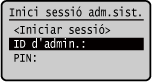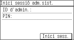 Si l'ID d'administrador del sistema està definit, apareixerà la pantalla d'inici de sessió per a les operacions que exigeixin privilegis d'administrador.