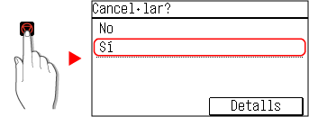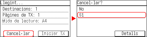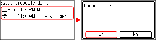 Si apareix la pantalla de llista de treballs, seleccioneu el treball que vulgueu cancel·lar i premeu [Sí].