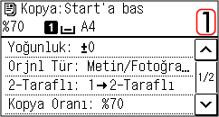 * Kopya oluşturmak için Kağıt Tasarrufu'nu kullandığınızda, kopyalama oranı kopyalama için kullanılan kağıt boyutu ve birleştirilen sayfa sayısına göre otomatik olarak ayarlanır. Kopyalama oranını manuel olarak değiştirmek için [Kopya Oranı] öğesine de basabilirsiniz.
