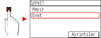 Bir iş listesi ekranı görüntülenirse iptal edilecek işi seçin ve [Evet] öğesine basın.