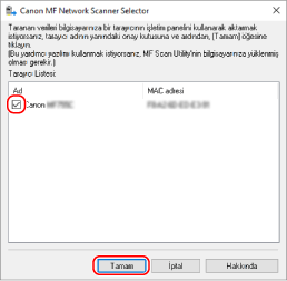 ] (Canon MF Network Scanner Selector) öğesine tıklayın.