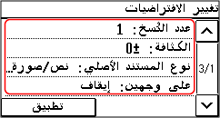 في شاشة وظيفة النسخ أو إرسال الفاكسات.