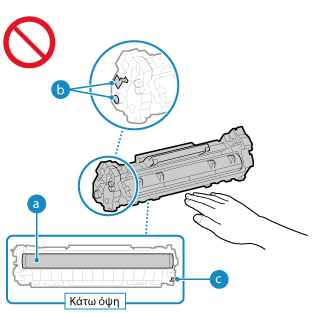Προσέξτε να μην αγγίξετε την επιφάνεια του τυμπάνου στο κάτω μέρος της κασέτας γραφίτη.