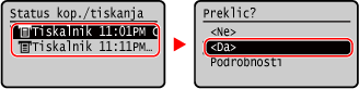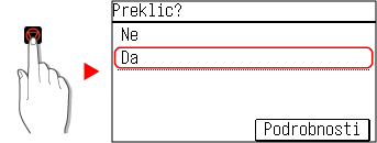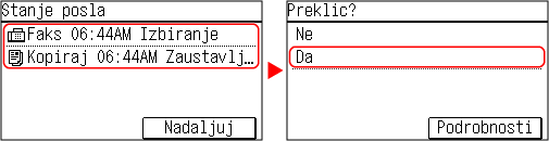 Če je prikazan zaslon s seznamom poslov, izberite posel, ki ga želite preklicati, in pritisnite [Da].
