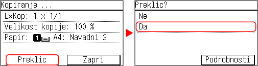 Če želite preklicati kopiranje, upoštevajte navodila na zaslonu.