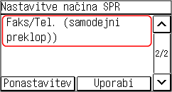 Ko se prikaže sporočilo [Nastavitve so uporabljene.], se prikaže zaslon [Nastavitve načina SPR].