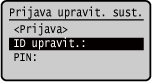 Kada se na upravljačkoj ploči prikaže zaslon za prijavu, unesite ID upravitelja sustava i PIN radi provjere autentičnosti. Po uspješnoj provjeri autentičnosti zaslon se mijenja i možete nastaviti s radom.