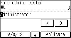 pentru a schimba tipul de caracter care este introdus. Tipul de caracter selectat pentru introducere este indicat de „A”, „a” sau „12” afișat deasupra și către dreapta câmpului pentru introducerea textului.