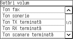 Puteți regla volumul sunetului faxului primit și a sunetelor care notifică trimiterea și recepționarea cu succes a faxurilor, precum și atunci când originalele sunt scanate cu succes.