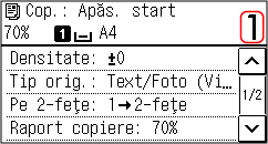 * Când utilizați funcția Economie hârtie pentru a efectua copii, raportul de copiere este setat automat în funcție de formatul de hârtie utilizat la copiere și de numărul de pagini care se combină. De asemenea, puteți apăsa pe [Raport copiere] pentru a modifica manual raportul de copiere.