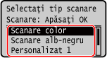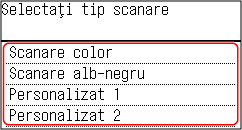 Se afișează ecranul de selecție a tipului de scanare.