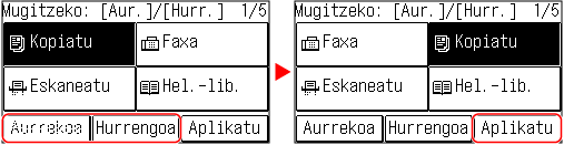 [Aurrekoa] edo [Hurrengoa] luze ukitzean, hautatutako botoia aldi oro mugituko da.