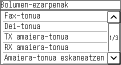 Hauen bolumena doi dezakezu: sarrerako faxen soinuak eta faxak behar bezala bidali eta jaso direla nahiz orijinalak behar bezala eskaneatu direla jakinarazten dizuten soinuak.