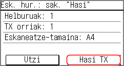 Dokumentu guztiak eskaneatu ondoren, sakatu [Hasi TX].