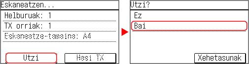 Lanen zerrendaren pantaila bat bistaratzen bada, hautatu bertan behera utziko duzun lana eta sakatu [Bai].