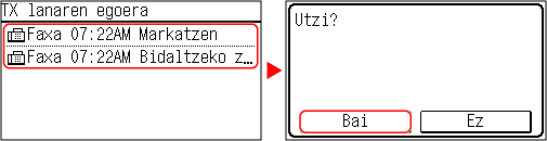 Jarraitu pantailako argibideei fax baten bidalketa bertan behera uzteko.