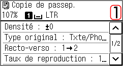 Sur le panneau de commande, appuyez sur [Cpie pssprt] dans l’écran [Accueil], et appuyez sur