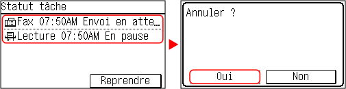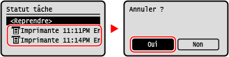 Si l’écran de la liste des tâches s’affiche, sélectionnez la tâche à annuler, puis appuyez sur [Oui].