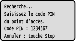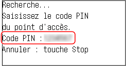 Lorsque le routeur LAN sans fil prend en charge le mode code PIN WPS, vous pouvez établir une connexion en enregistrant un code PIN généré sur l’appareil auprès du routeur LAN sans fil. Utilisez un ordinateur pour enregistrer le code PIN.