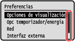 para desplazar la pantalla en la dirección pulsada. El elemento seleccionado actualmente se invierte.