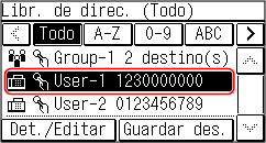 Si especifica destinos accediendo a la Libreta de direcciones desde la pantalla [Inicio], utilice la lista de destinos.