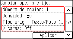 [Cambiar opciones prefijadas]