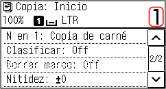 Pantalla [Inicio]Aparece la pantalla de copia.