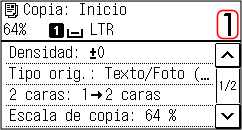 1 | Seleccione el tamaño de papel. Solo se muestra cuando se especifica la copia a dos caras. |