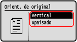 3 | Seleccione la orientación del original  . Aparece la pantalla [Tipo de acabado]. |