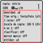 Además de los ajustes de copia básicos, el equipo también tiene opciones de copia a dos caras, ajuste de la calidad de la imagen y otros ajustes según el original y el uso que quiera darle. Use la pantalla de copia para configurar estos ajustes.