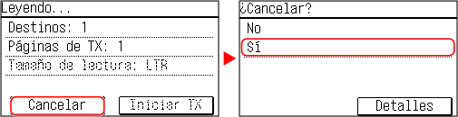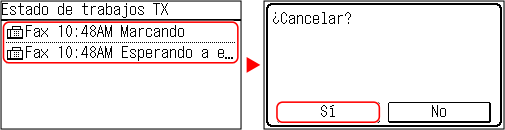 Si aparece una pantalla con la lista de trabajos, seleccione el trabajo que desea cancelar y pulse [Sí].
