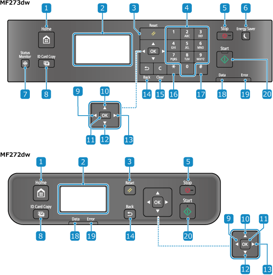 Utilice el panel de control para manejar la máquina y establecer la configuración. Si la pantalla es difícil de ver, ajuste el ángulo del panel de control como se muestra a la derecha. (Modelo con pantalla táctil, MF273dw) | | |