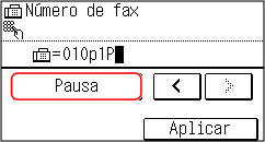 Inicie sesión en la IU remota  [Configuración]  [Opciones de TX]  [Opciones de TX de Fax]  [Editar]  en [Establecer duración de pausa], introduzca el tiempo de pausa  [Aceptar] |