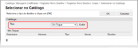 Em [Tipo], selecione [Um Toque] ou [Discagem Codificada] e clique em [Exibir] para alterar a exibição do catálogo de endereços.