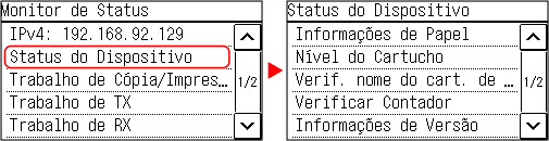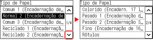 ] para percorrer a tela. A Tela muda página por página e o número de página é exibido na barra de rolagem.