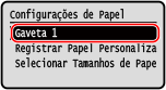 No painel de operação, selecione [Configur. Papel] na tela [Início] e pressione