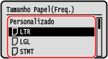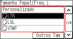 Pressione [Outros Tam] e selecione o tamanho do papel na lista exibida.