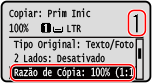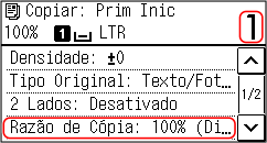 1 | Selecione o tamanho do original. Exibido apenas quando a cópia frente e verso está especificada. |