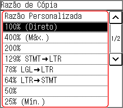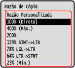 Pressione [Razão Personalizada], insira uma proporção personalizada usando as teclas numéricas ou pressione