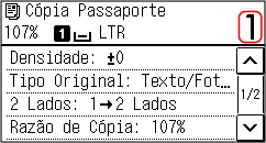 * Quando você usa Cópia de passaporte para fazer cópias, a proporção de cópia é definida automaticamente de acordo com o tamanho do papel usado para copiar e o número de passaportes a serem combinados. Você também pode pressionar [Razão de Cópia] para alterar a proporção da cópia manualmente.