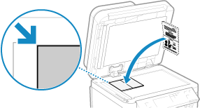 Coloque a página a ser digitalizada com a face voltada para baixo enquanto alinha o canto do passaporte com o canto superior esquerdo da placa de vidro, como mostrado.