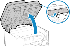 A tampa do alimentador ou da placa de vidro está totalmente fechada.