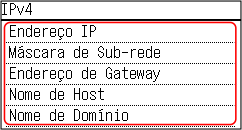 A conexão da máquina a um hub de comutação, por exemplo, pode impedir a conexão com a rede mesmo quando o endereço IP está configurado corretamente. Nesse caso, defina um tempo de espera até que a máquina comece a se comunicar e tente se conectar novamente. [Tempo Espera p/Conexão na Inicialização] |