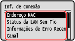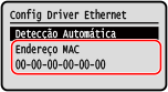 Você pode ver o endereço MAC definido na máquina quando ela está conectada à LAN com fio.