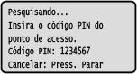Assim que esta tela for exibida, você deve registrar o código PIN de WPS no roteador de LAN sem fio dentro de 10 minutos.