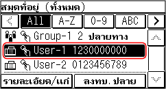 เมื่อระบุปลายทางโดยการเรียกใช้สมุดรายชื่อจากหน้าจอ [Home] ใช้รายการปลายทาง