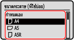 เลือกขนาดกระดาษที่ใส่ไว้ในถาดใส่กระดาษ